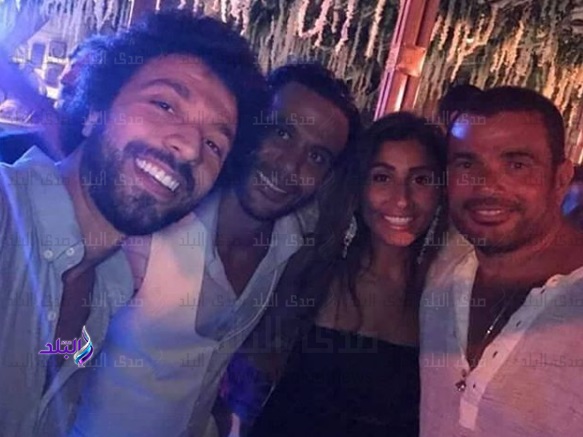 نشر المطرب عمرو دياب، صورة له على إنستجرام، تجمعه بالفنان محمد عادل إمام، فى حفل زفاف الأخير، بأحد شواطئ الساحل الشمالي.