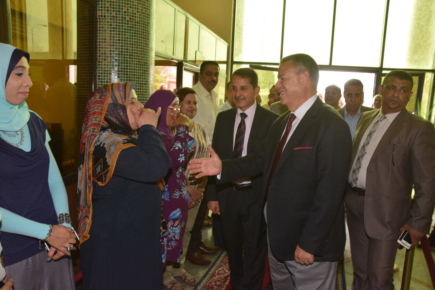 استقبال محافظ بني سويف الجديد بالزغاريد في ديوان عام المحافظة.. صور