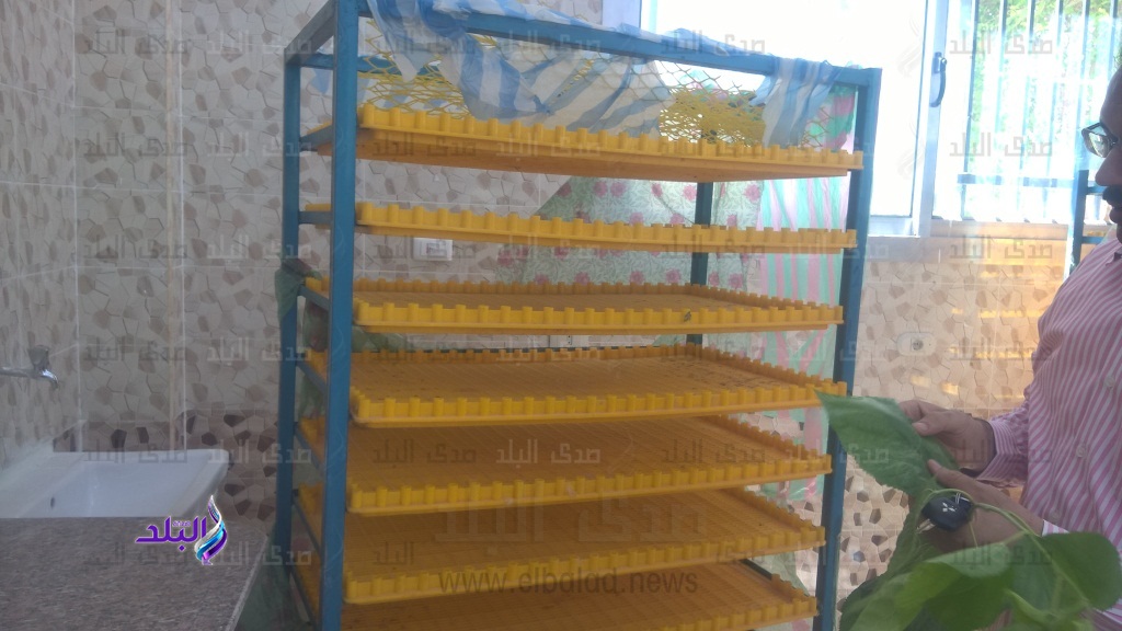 وتابع: "أما تربيتها فتحتاج إلى مكان مناسب من حيث التهوية ودرجة الحرارة ويمنع دخول الفئران، تطهير حجرات التربية بالفورمالين قبل التربية ووضع أواني أسفل الحوامل لمنع النمل، العناية اثناء تحضين البيض، حيث يتم ضبط درجة الحرارة علي 25c ورطوبة 90% وتستمر فترة التحضين من 7-10 أيام ، ويراعي انتظام درجة الحرارة والرطوبة داخل الحضان مع تحريك البيض حتي لايلتصق الجنين، وتوفير أوراق التوت الجيدة بكمية مناسبة لليرقات خاصة في أعمارها الكبري "الرابع والخامس" حيث تكون شرهة جدًا في التغذية".