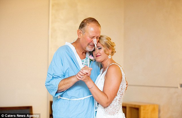 ومع ذلك ، بعد معاناة وعدد من النكسات ، قبل ثلاثة أيام فقط من إعانته على المشي مع ابنته بممر المستشفى ، قال الأطباء للاب أنه كان مريضا جدا ولا يستطيع حضور الزفاف.