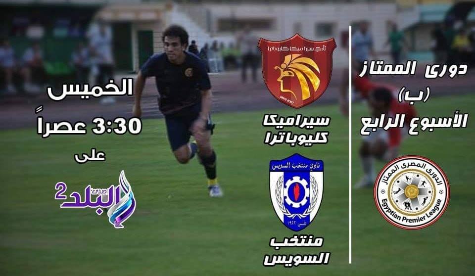 يستضيف ملعب المقاولون العرب المباراة التى تجمع بين فريق سيراميكا كليوباترا ومنافسه منتخب السويس وذلك في تمام الساعة الثالثة والنصف عصر اليوم في قمة خاصة بمواجهات المجموعة الثانية "القاهرة" بالدوري الممتاز ب.
