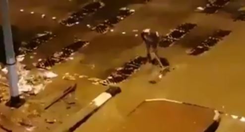 وتم توثيق الدور الذي قام به هذا العامل، عبر مقطع فيديو انتشر على موقع "تويتر" حي ظهر وهو يحاول تصريف المياه بمجرفته ويديه بإتقان، مؤكدين أنه نموذج يجب أن يحتذى به وأن عمله لا يقل أهمية عن غيره.