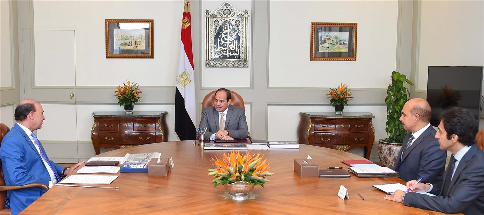 وصرح السفير بسام راضي المُتحدث الرسمي باِسم رئاسة الجمهورية بأن الفريق مهاب مميش عرض خلال الاجتماع تطورات سير العمل في هيئة قناة السويس، والموقف التنفيذي لتطوير المنطقة الاقتصادية لقناة السويس، وموقف تطوير الموانئ البحرية، ومشروع تطوير ورفع كفاءة بحيرة المنزلة.