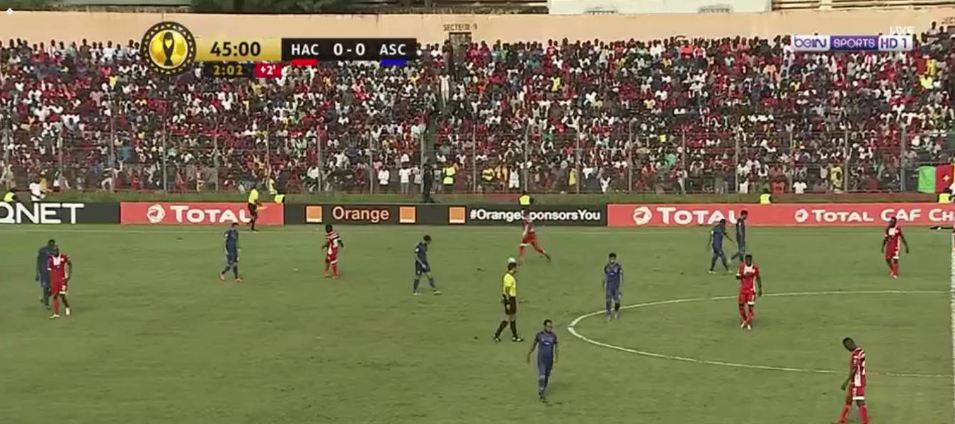 وهدد الاهلي مرمى فريق هورويا وذلك بالدقيقة 34 بتسديدة بعد تسديدة قوية من هشام محمد من خارج منطقة الجزاء.