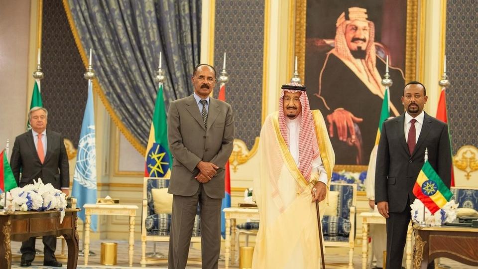 وذكرت وكالة الأنباء السعودية اليوم، أن الرئيس الإريتري، ورئيس وزراء أثيوبيا وقعا اتفاقية (جدة للسلام) برعاية السعودية، بحضور الأمير محمد بن سلمان ولي العهد السعودي نائب رئيس مجلس الوزراء وزير الدفاع.