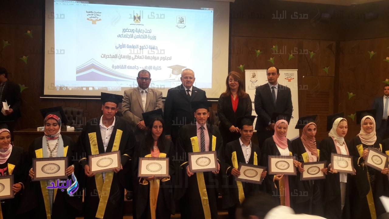 جاء ذلك خلال فعاليات حفل تخريج أول دفعة من الدبلومة المهنية فى مجال مواجهة تعاطى المخدرات بجامعة القاهرة، حيث تعد أول دبلومة جامعية متخصصة فى مجال علاج الإدمان وخفض الطلب على المخدرات على مستوى الدول العربية والشرق الأوسط ومعتمدة من المجلس الأعلى للجامعات، بحضور كل من، محمد عثمان الخشت رئيس جامعة القاهرة والدكتور أحمد الشربينى عميد كلية الأداب وعمرو عثمان مساعد وزير التضامن - مدير صندوق مكافحة وعلاج الادمان والتعاطى والعديد من الكتاب والشخصيات العامة.