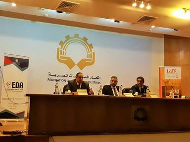 وفي السياق ذاته قام أ. حسام الدين الشافعي فقد أشار إلى مجهودات الهيئة في التواصل مع كافة المؤسسات والشركات المصرية وجهد وزارة التجارة والصناعة في تعريف مجتمع الأعمال المصري بتوضيح أهمية المشاركة الفعالة في "المعرض الأفريقيالأول للتجارة البينية 2018 IATF" وخاصة أن جمهورية مصر العربية هي التي حظيت بإقامة أول دورة له على أراضيها حيث من المتوقع مشاركة أكثر من 1000 عارض وحضور أكثر من 70000 زائر وبائع ومشتري وأن تبلغ قيمة الصفقات والعمليات التجارية المتوقعة حوالي 25 مليار دولار أمريكي.