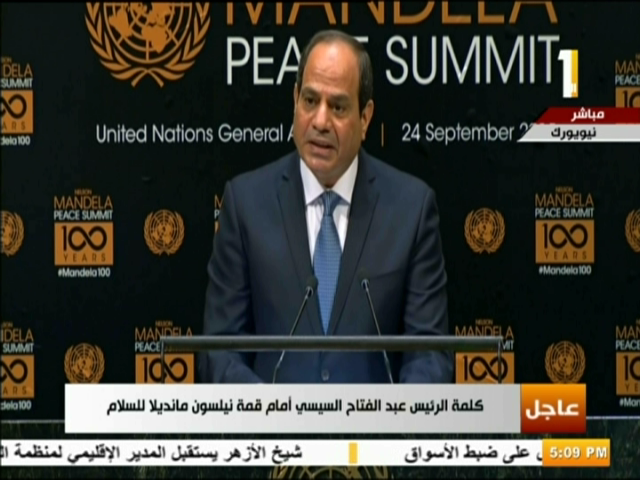 وأضاف خلال كلمته بقمة نيلسون مانديلا للسلام بالولايات المتحدة فى نيويورك، أن الجميع عليه التضامن والتعاون الصادق من أجل محاربة الإرهاب والعنصرية وتكفير الآخر.