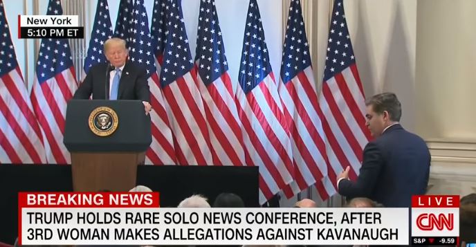 ووقعت هذه المشادة بين ترامب وأكوستا، حينما سؤل ترامب بعض الأسئلة حول جلسة السماع لبريت كافانوخ، المعين من ترامب لمنصب المحكمة العليا، والذي يطاله اتهام من سيدة بالاعتداء الجنسي.