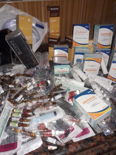 ١١٥٠٠ كبسولة / كيس / زجاجة أدوية متنوعة غير مسجلة بوزارة الصحة ومجهولة المصدر في مركزين للعلاج الطبيعي بدون ترخيص بمركزي الزقازيق وديرب نجم كما تم ضبط ١٨١٠ قرص أدوية جدول ثاني مواد مؤثرة علي الحالة النفسية بدون فواتير و ٢٢٩٦ قرص / كيس / انبوبة أدوية مجهولة المصدر غير مسجلة وغير مصرح بتداولها بالاضافة الي ٣ علب لبن أطفال مدعم خاص بوزارة الصحة والسكان محظور بيعها بالصيدليات و٤٥٦٠ قرص أدوية محظور بيعها خاصة( بوزارة الصحة والسكان - التأمين الصحي _ القوات المسلحة - هيئة سكك حديد مصر).