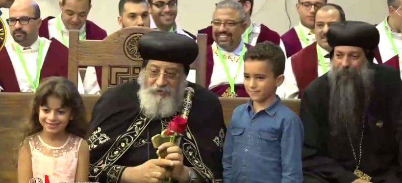 ألقى في البداية أحد الآباء الكهنة كلمة ترحيب بقداسة البابا، كما ألقى أحد شباب الكنيسة كلمة أيضًا تحدث خلالها عن تجربة ملتقى الشباب العالمي الذي أقيم بمصر الشهر الماضي، وكان هو أحد المشاركين فيه.