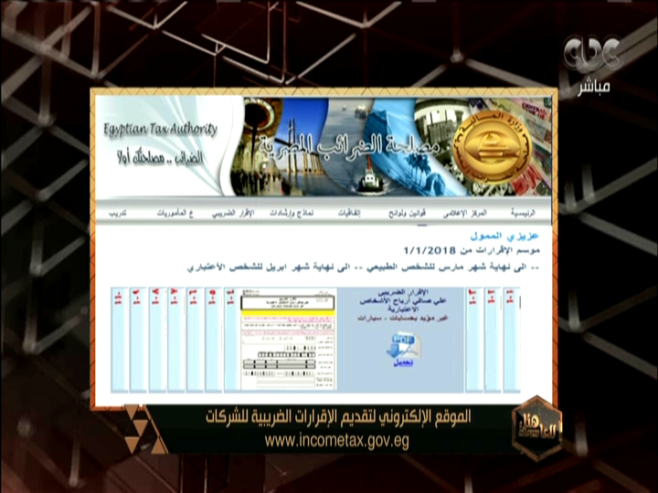 وأضاف " محروس " في مداخلة هاتفية ببرنامج " هنا العاصمة " المذاع على قناة " سي بي سي"، قائلا:" أصدر وزير المالية قرارا بإلزام الشخصيات الاعتبارية والشركات بتقديم الإقرارات الضريبية اعتبارا من عام 2018، اختياريا للشخص الطبيعي لتقديم الإقرار الضريبي لضريبة الدخل، وسيكون إجباريا للشخص الطبيعي في عام 2020".