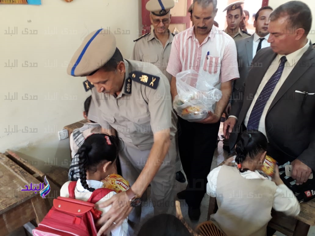 أمن الفيوم توزع وجبات غذائية على طلاب مدرسة النور للمكفوفين