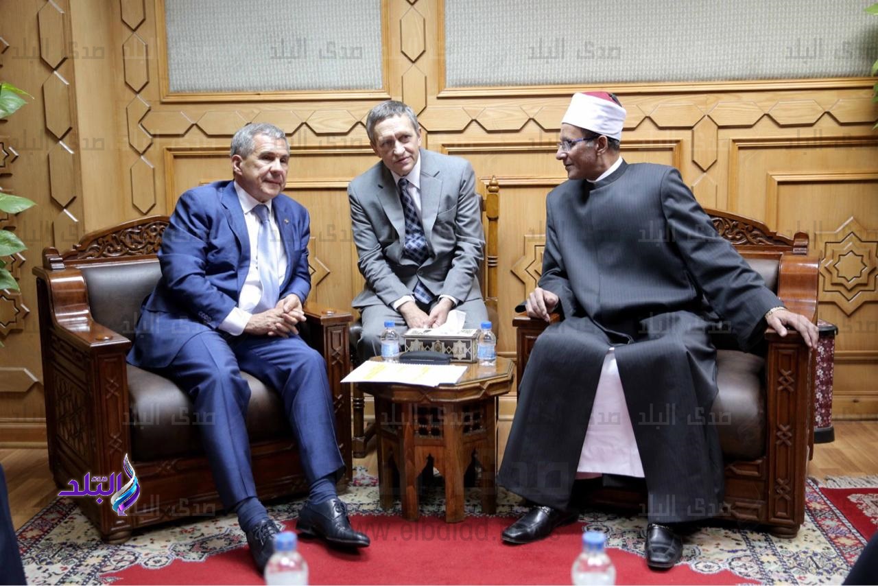 استقبل الشيخ صالح عباس، القائم بأعمال وكيل الأزهر الشريف، اليوم الأحد، رستم مينخانوف، رئيس جمهورية تتارستان التابعة لجمهورية روسيا الاتحادية والوفد المرافق له.