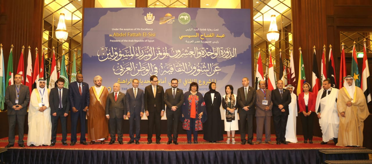 حرص وزراء الثقافة العرب المشاركون فى ختام أعمال الدورة الحادية والعشرين لمؤتمر الوزراء المسؤولين عن الشئون الثقافية فى الوطن العربي، والتى أقيمت برئاسة الدكتورة إيناس عبد الدايم وزير الثقافة واستضافته القاهرة يومى 14 ، 15 أكتوبرعلى إرسال برقية تهنئة للرئيس عبد الفتاح السيسى رئيس الجمهورية لرعايته الفعاليات.