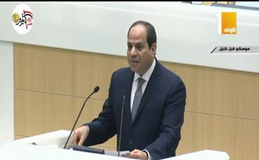 وأشار الرئيس السيسي إلى إن مصر بينما تمضي في طريقها إلى هذا المستقبل ، تتطلع إلى تعزيز مستوى التنسيق والتواصل مع روسيا ، وفتح آفاق جديدة للتعاون ، لاسيما في مواجهة التحديات المشتركة ، وعلى رأسها خطر انتشار وتمدد الإرهاب ، الذي يتشح زورًا باسم الدين ، بحثًا عن أهداف خبيثة ، ومصالح ضيقة ، لفئات لا تعرف أديانًا ولا أوطانًا ، فأصبحت عدوًا للإنسانية بأسرها ، إلا أن القضاء على هذه الآفة الخطيرة ، يستوجب منا مواجهة جماعية من منظور شامل ، نخوض من خلاله ، معركة العقول والقلوب ضد أفكار التطرف والانغلاق ، مع إيلاء الاعتبار اللازم للبعدين الاقتصادي والاجتماعي ، بجانب الإجراءات العسكرية والأمنية.