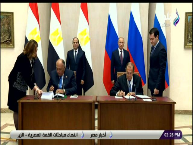 شهد الرئيس عبد الفتاح السيسي، ونظيره الروسي فلاديمير بوتين، توقيع مذكرات تفاهم المشتركة.