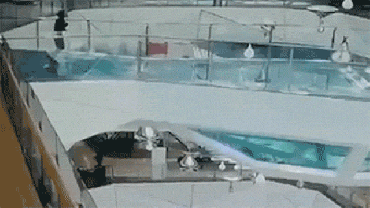 تعود التفاصيل عندما كانت السيدة تركض بالقرب من حوض القرش، وتعثرت؛ لتصطدم بوجهها بمياه الحوض، وتسقط بجوار أسماك القرش، ولحسن الحظ قفز اثنان من أفراد الأمن للمياه، وسحبوها فورا لإنقاذ حياتها.