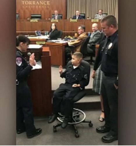 ليحقق الطفل الذي يدعى "دريك ووكر" حلمه في اتباع خطى والده، وهو رقيب في إدارة شرطة تورانس، حيث أدى اليمين خلال اجتماع مجلس المدينة ليلة الثلاثاء، ورصدته الكاميرات وهو يجلس على الكرسي ويؤدي اليمين الدستوري ويلتف أهلهمن حوله في سعادة.