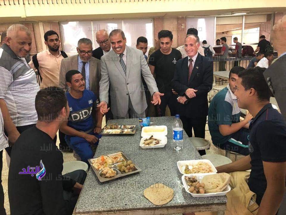 رئيس جامعة الأزهر يتناول الغداء مع طلاب المدينة للاطمئنان على الوجبات