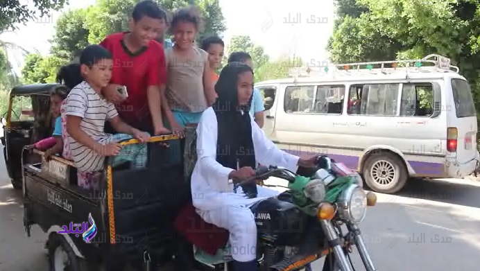 وأضافت : انا جربت اشتغل كتير علشان اصرف على اخواتى الأربعة ووالدى المسن الذى كان يعمل خفيرا ،وفكرت اشتغل سائقة تروسيكل لنقل البضائع للتجار والطلاب للمدارس فتعلمت قيادة الدراجة البخارية.