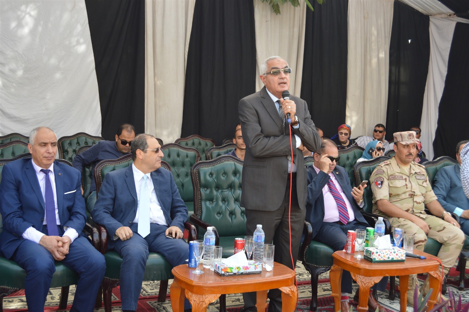 كما قدم الدكتور أشرف عبد الباسط التحية لطلاب التربية العسكرية وطلاب الكليات المختلفة على التنظيم الرائع والذى يعكس الروح الوطنية العالية للاحتفال بهذا الانتصار العظيم كما قدم التهنئة لجميع طوائف الشعب المصرى قيادة وشعبا على انتصار أكتوبر انتصار العزة والكرامة واستعادة الأرض