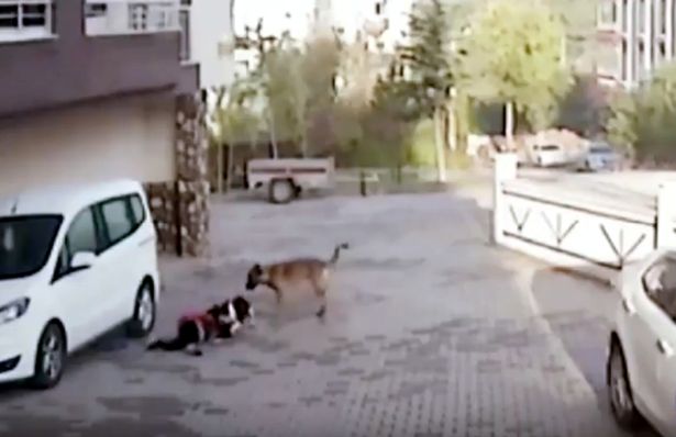 لتسمع الأم صرخات طفلتها وتجري نحوها، محاولة تسديد لكمات في وجه الكلب وإبعاده بشتى الطرق سواء بإلقاء حجارة ولكنه لم يبعد وأخذ ينهش في جسد الأم أيضًا، لتطلق الأم صرخاتها طالبة المساعدة من المارة.