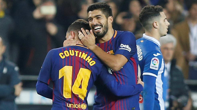 خط الهجوم: رافينيا- فليبي كوتينيو – لويس سواريز.