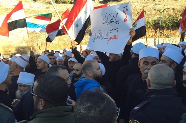 وتظاهر عدد من سكان مجدل شمس وهم يرفعون الأعلام السورية وأعلام الطائفة الدرزية، للمطالبة بإلغاء التصويت، "لأن الاشتراك بالانتخابات، يعتبر اعترافا بالسيادة الإسرائيلية على الجولان، وخيانة للشعب السوري"، على حد تعبيرهم.