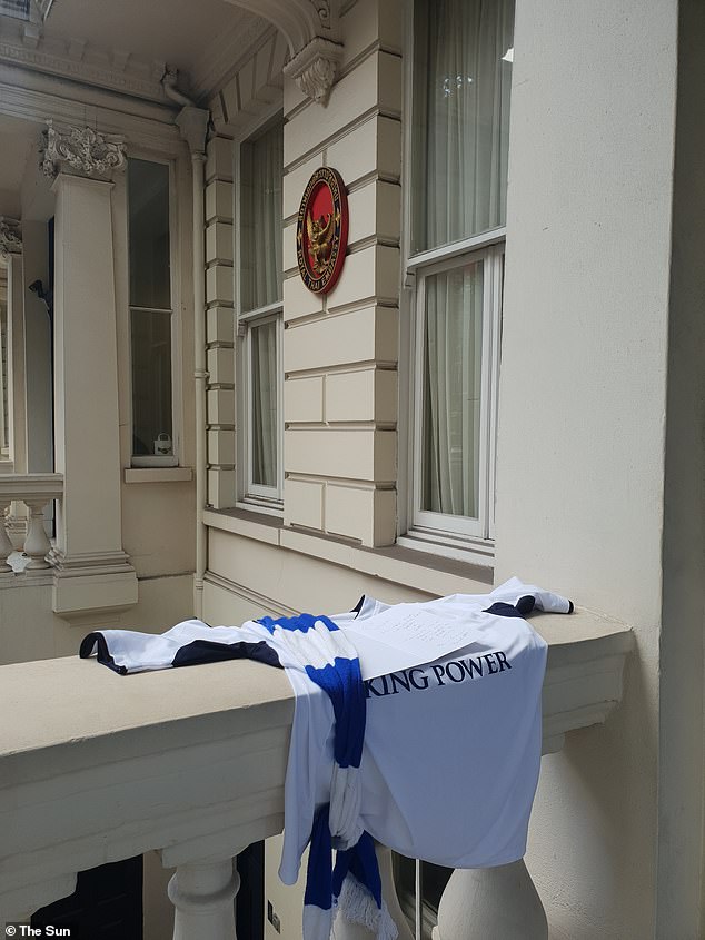 فقد تمت سرقة القميص بعد 3 ساعات فقط من وضعه على باب السفارة، وقد وضع القميص مع ورقة نعي ووشاح للنادي.