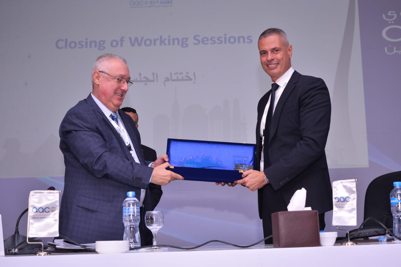 كما توجه رئيس الأكو بالشكر للفريق يونس المصري وزير الطيران المدني ودعمه لانعقاد الجمعية في مصر كما توجه بالشكر لمصر للطيران علي خروج الجمعية بالشكل المشرف واللائق لمكانتها الاقليمية والدولية وقدم هدية تذكارية للطيار احمد عادل رئيس مصرللطيران بمناسبة نجاح الجمعية في دورتها 51 .
