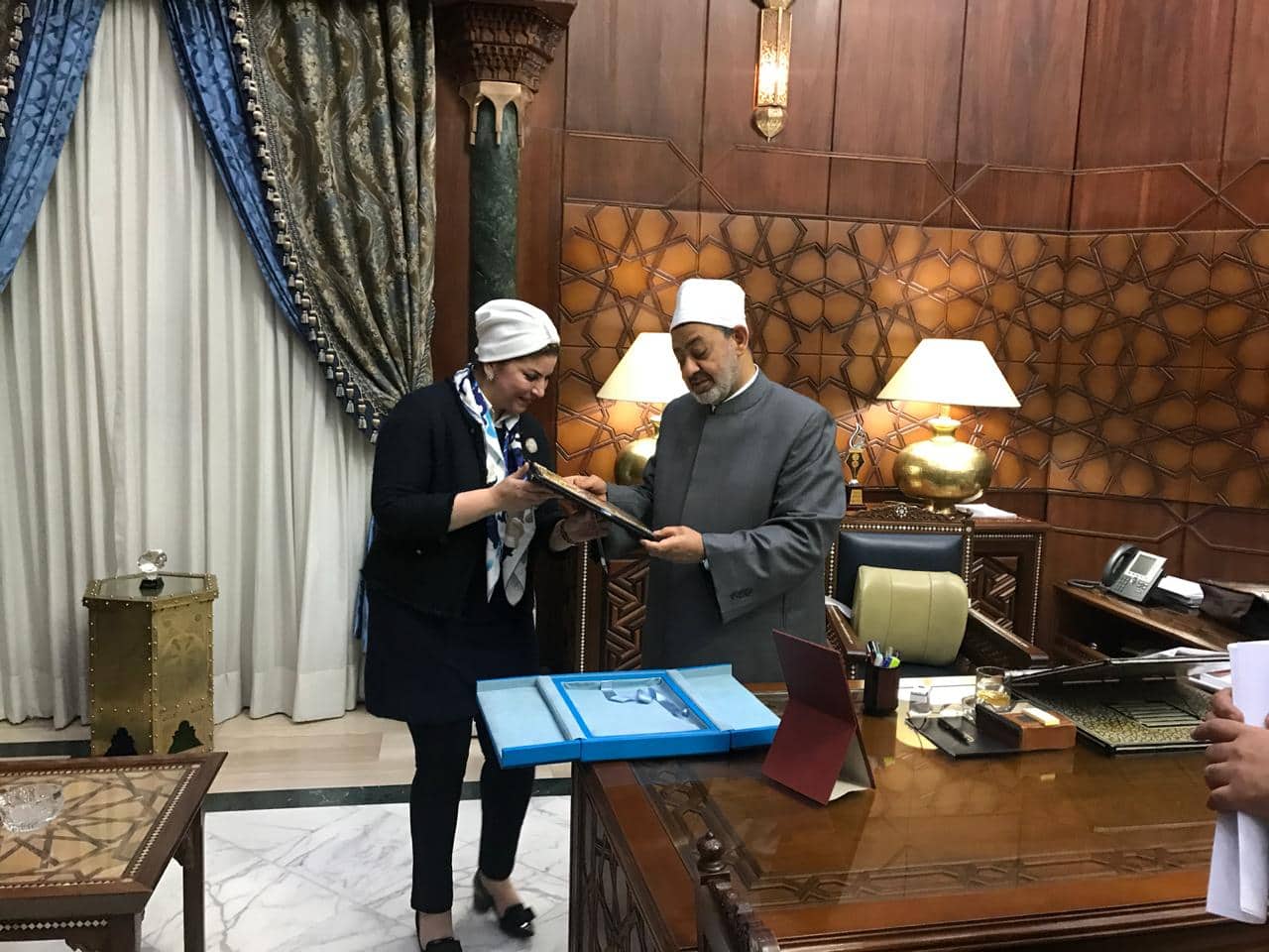 وقدمت "العبسي" الشكر للإمام الأكبر على دعمه المستمر للمرأة المصرية، خاصة بعد قراره الأخير بعدم نقل السيدات العاملات بالأزهر من أماكن عملهن ، ما لم يكن يرغبن في ذلك أو بعد عرض مبررات النقل و موافقته الشخصية على القرار .
