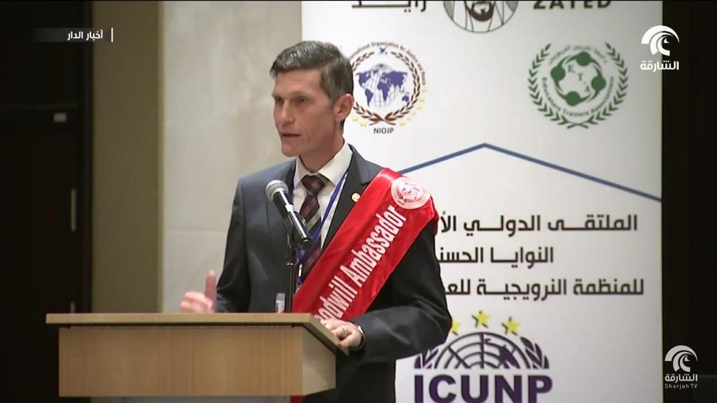 وقد تم بحمد الله تعالي تكريمي من قبل المنظمة النرويجية الدولية للعدالة والسلام لحضور الملتقى الدولي الأول لسفراء العرب وحصولي علي لقب سفيرا للنوايا الحسنة للمنظمة وقد اختار الامين العام د. طارق عناني للمنظمة النرويجية مدينة الشارقة بدولة الإمارات العربية المتحدة لاستضافة الملتقى الدولي لسفراء الإنسانية باعتبارها عاصمة للثقافة العربية، والتي تتسم بنشر قيم التسامح واحتضان المبادرات الإنسانية، وذلك يومي 18 / 19 اكتوبر الماضي.