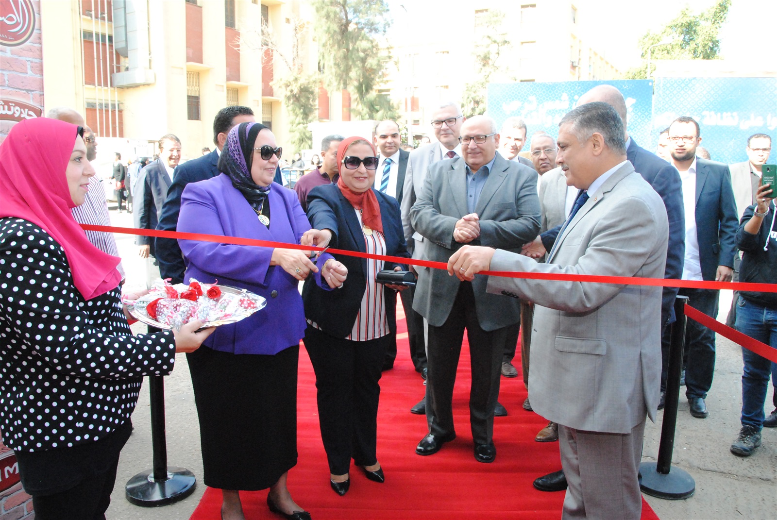 وذلك بحضور كلًا من د. نظمي عبد الحميد نائب رئيس الجامعة لشئون خدمة المجتمع وتنمية البيئة، ود. خالد قدري عميد كلية التجارة، وسمير عبد الناصر أمين عام الجامعة، ود. جيهان رجب وكيل كلية التجارة لشئون المجتمع والبيئة، ود. هيام وهبة وكيل كلية التجارة لشئون الدراسات العليا والبحوث، ود. محمد عبد الفتاح وكيل الكلية لشئون التعليم و الطلاب، وسهيل حمزة أمين الجامعة المساعد لشئون قطاع خدمة المجتمع و البيئة