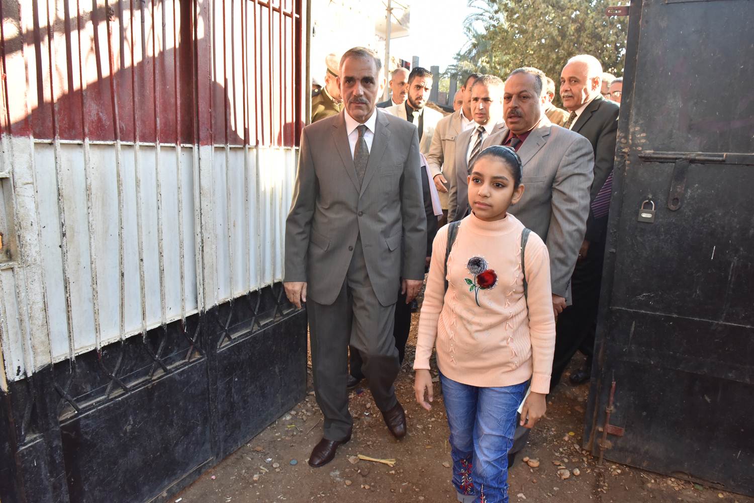 محافظ أسيوط يصطحب تلميذة لمدرستها بعد علاجها من إصابة عينها على يد المعلم