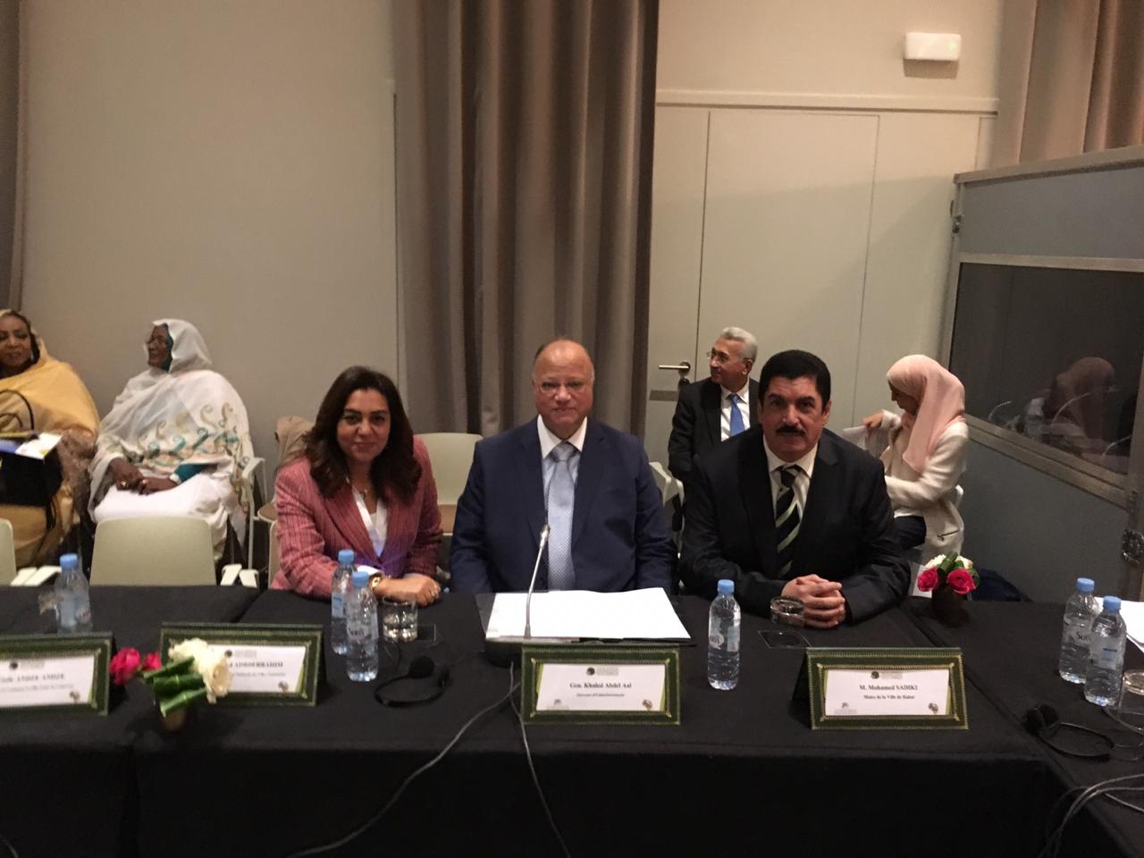 ورحب فؤاد العماري سكرتير عام المنظمة خلال الجلسة بالوفد المصري رفيع المستوى الذي يترأسه اللواء محمود شعراوي وزير التنمية المحلية ويضم محافظى القاهرة والقليوبية ودمياط.