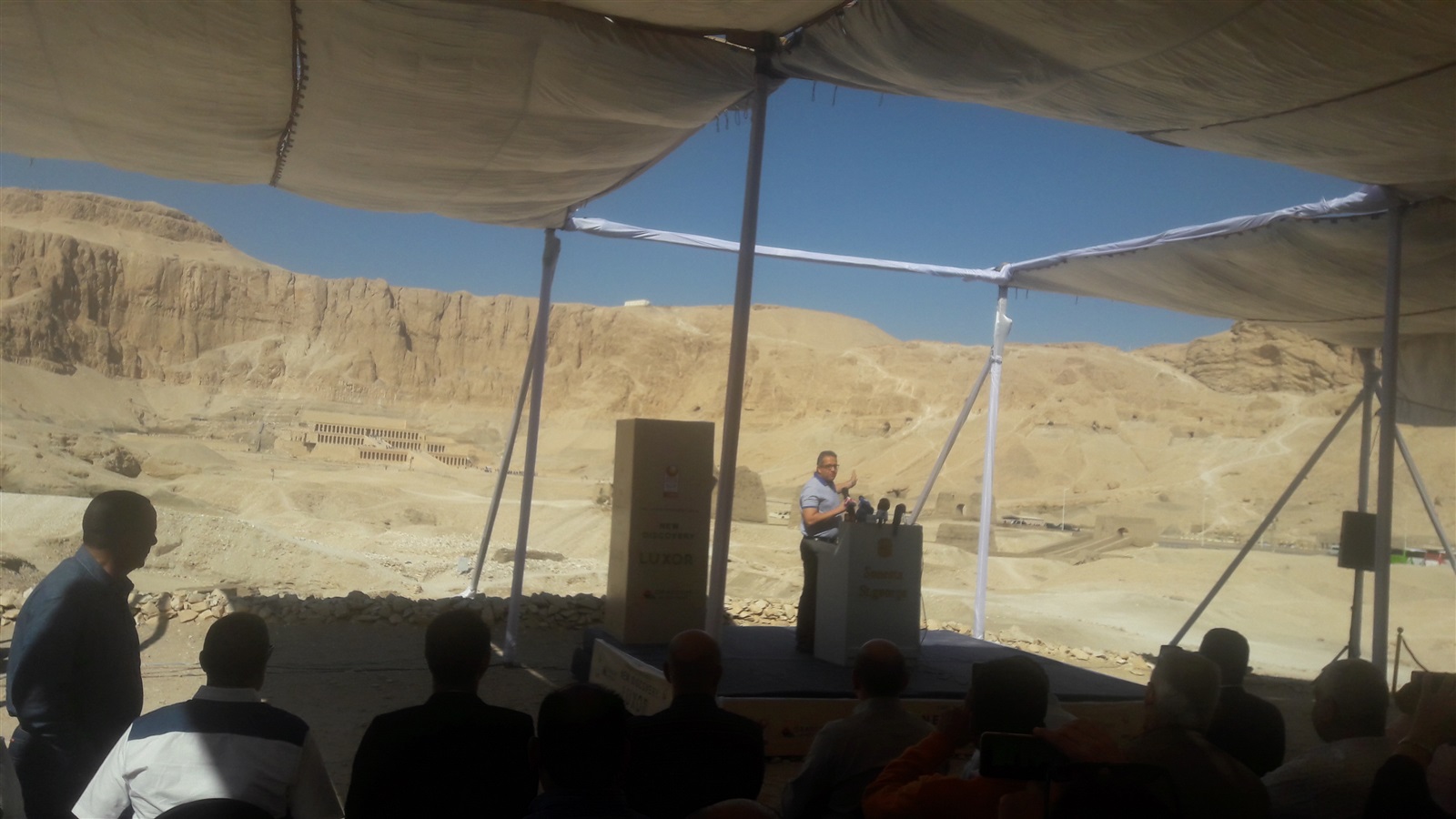 أعلن الدكتور خالد العنانى، وزير الآثار، اليوم، السبت، بمنطقة البر الغربي بالأقصر عن كشف أثري جديد عبارة عن مقبرة من عصر الرعامسة تعود إلى الأسرة 19، 20.