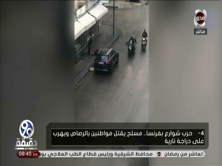 عرض الإعلامي محمد الباز فيديو لمسلح فرنسي يقتل شخصين بشوارع باريس خلال الاضطرابات الأخيرة بالعاصمة الفرنسية، خلال تقديمه برنامج "90 دقيقة" المذاع على فضائية المحور.