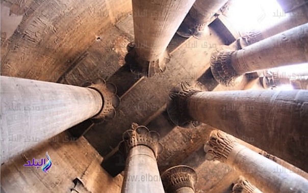 وأضاف حسن أن أهم ما فى المعبد صالة الأعمدة التى تعتبر من أجمل المبانى فى مصر وترجع للعصر اليونانى الرومانى، فهي عبارة عن صىالة مسىتطيلة الشىكل ذو واجهة ذات طراز معماري خاص ويحمل سقفها 24 اسطوانا بارتفاع 5,13م ومزخرفة بنقوش بارزة ذات تيجان نباتية متنوعة