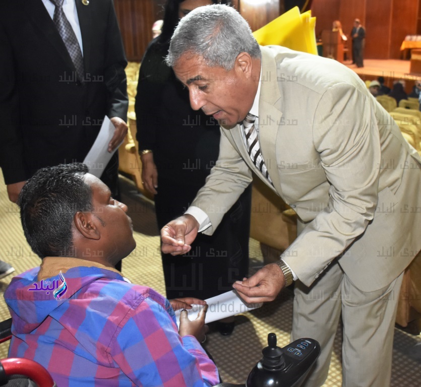 وأكد أن هذه الفئة من أبناء المجتمع يمثلون لنا نموذجًا مشرفًا فى الإصرار والعزيمة بقدراتهم ومواهبهم الفذة لأنهم يسعون للعمل على توظيفها بالشكل الأمثل وهو ما يجد إهتمامًا مستمرًا من الحكومة لدعم الموهبين والقدرات الخاصة فى القطاعات الرياضية والفنية والثقافية تطبيقًا لما جاء فى الدستور الذى لم يغفل الاهتمامبذوى الإعاقة للتأكيد على حقوق هذه الفئة المتميزة من أبناء المجتمع صحيًا واقتصاديًا واجتماعيًا وثقافيًا ورياضيًا وترفيهيًا وتعليميًا .