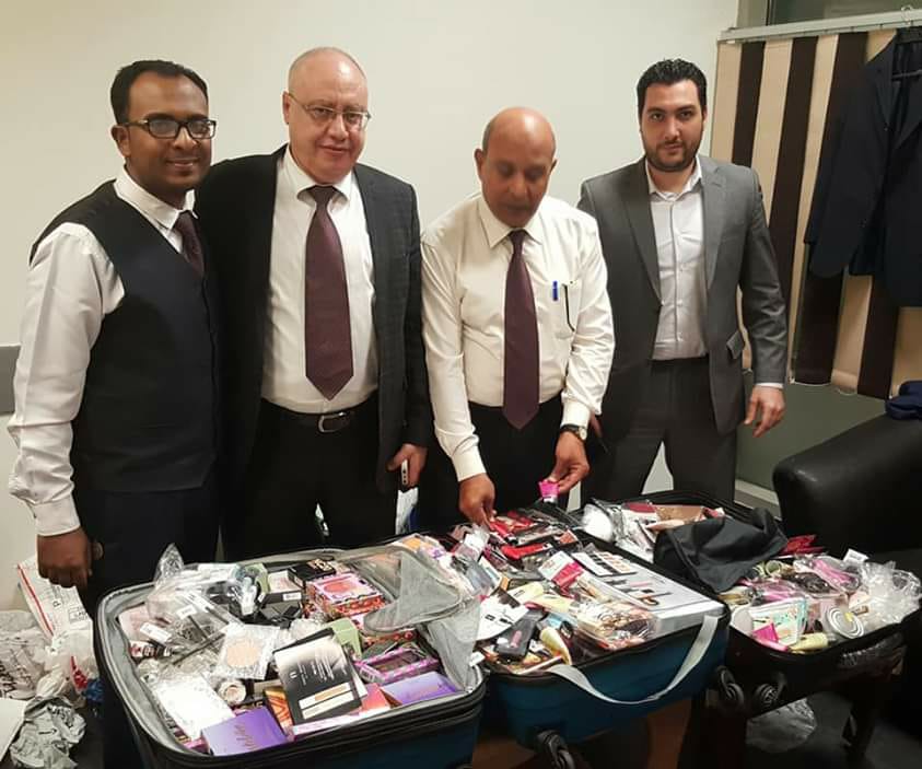 ضبط راكب مصري بالمطار حاول تهريب مستحضرات تجميل.. صور
