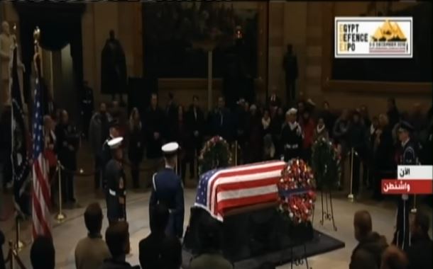 عرضت فضائية "إكسترا نيوز" لقطات جنازة رسمية للرئيس الأمريكي الأسبق جورج بوش في الكاتدرائية الوطنية بواشنطن.