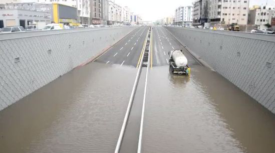 وتداول رواد موقع "تويتر" مقطع فيديو للنفق وهي تغمره مياه الأمطار، معلقين: "الأمطار أغرقت النفق وتم منع المرور به حتى تنسحب المياه منه"، و"النفق غرق والطرق كلها أمطار وصعب التحرك فيها".