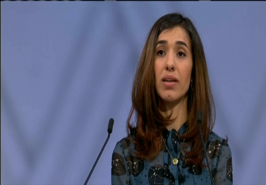 وأضافت مراد خلال تسلمها جائزة نوبل للسلام 2018، أن وحدة العراقيين فى مواجهة داعش أصبح قوة لنا جميعًا واستطعنا أن نجمع جرائمهم ونفضحهم وان نتوحد ونعمل معًا لمحاسبة داعش وللذين رحبوا وانضموا وشجعوا التنظيم الإرهابى، مشيرة إلى أنه يجب ألا يكون هناك مكان للإرهاب فى العراق ويجب أن نكون يدًا واحدة فى بناءه وتحقيق الأمن والاستقرار.