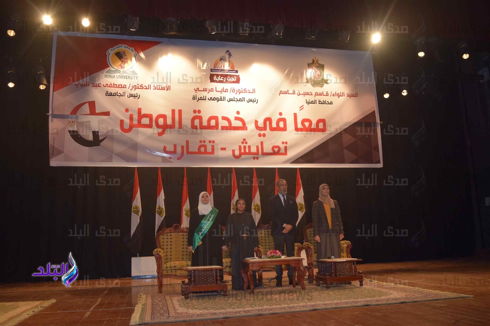 جاء ذلك خلال فعاليات ندوة "معًا في خدمة الوطن: تقارب... تعايش" والتي استضافتها جامعة المنيا اليوم، ضمن برنامج معا في خدمة الوطن الذي ينظمه المجلس القومي للمرأة برئاسة الدكتورة مايا مرسى، وحضور الدكتور مصطفي عبد النبي رئيس الجامعة والكاتبة نشوى الحوفى والسيناريست الدكتور مدحت العدل وايزيس محمود مدير عام التدريب بالمجلس القومي للمرأة بالقاهرة والدكتورة رشا المهدي مقرر المجلس القومي للمرأة بالمنيا وممثلين عن الاجهزة الامنية والرقابية وكذلك الكنيسة ومديرية الأوقاف وعدد من الواعظات والراهبات، وطلاب وطالبات جامعة المنيا وساكني المدينة الجامعية.