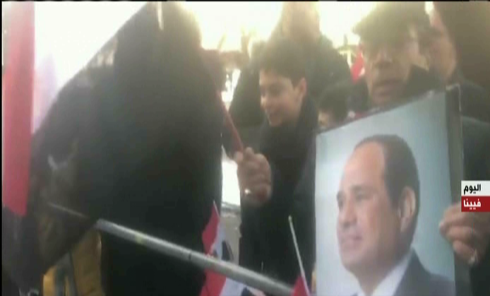 احتشدت الجالية المصرية في النمسا أمام مقر إقامة الرئيس عبد الفتاح السيسي ترحيبًا به فور وصوله إلى مقر إقامته.