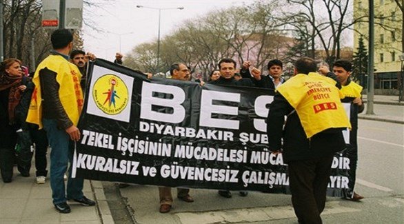 وأضافت أن المتظاهرين تجمعوا تلبية لنداء اتحاد نقابات عمال الخدمة العامة، في وسط المدينة، التي تعد أكبر مدن جنوب شرق تركيا ذات الغالبية الكردية، تحت رقابة أمنية مشددة.