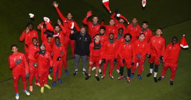 احتفل لاعبو نادى ليفربول الإنجليزى، الذى يلعب ضمن صفوفه النجم المصرى محمد صلاح، بعيد الميلاد خلال تدريبات الفريق.