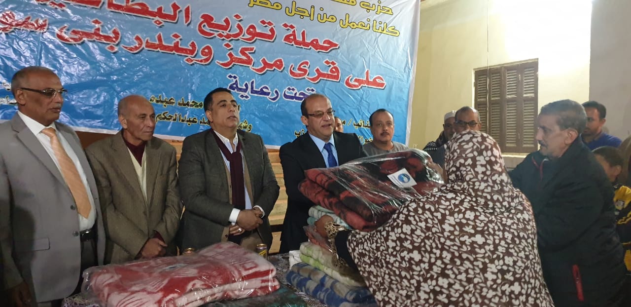واصلت أمانة حزب مستقبل وطن ببني سويف، برئاسة النائب حسام العمدة أمين الحزب بالمحافظة ووكيل لجنة العلاقات الخارجية بمجلس النواب، توزيع البطاطين على القرى الأكثر احتياجا، تحت شعار مبادرة "وطن دافئ"، حيث قامت أمانة الحزب بالمحافظة، بتوزيع البطاطين بمناطق قريتي الوقف وبني هارون التابعتين لمركز بني سويف، والتي يوجد بهما تجمعات سكانية كبيرة.
