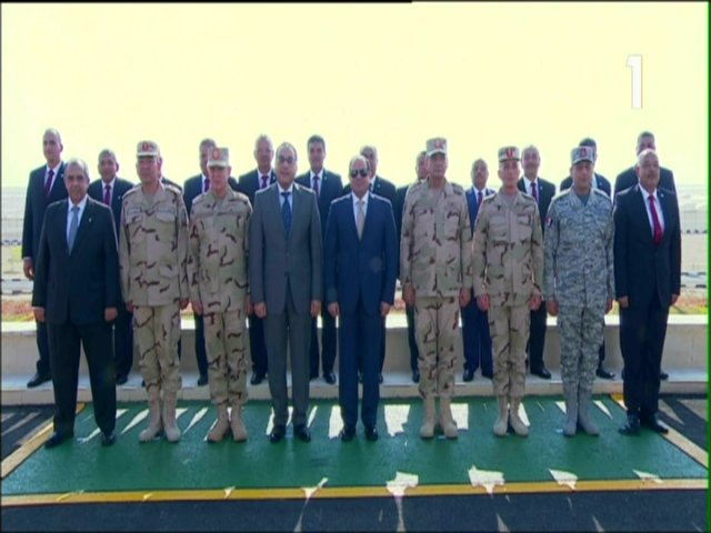 تم التقاط صورة تذكارية للرئيس عبد الفتاح السيسي والمهندس مصطفى مدبولي، رئيس مجلس الوزراء، وعدد من القيادات بالقوات المسلحة خلال افتتاح المشروع القومي للصوب والمحميات الزراعية.